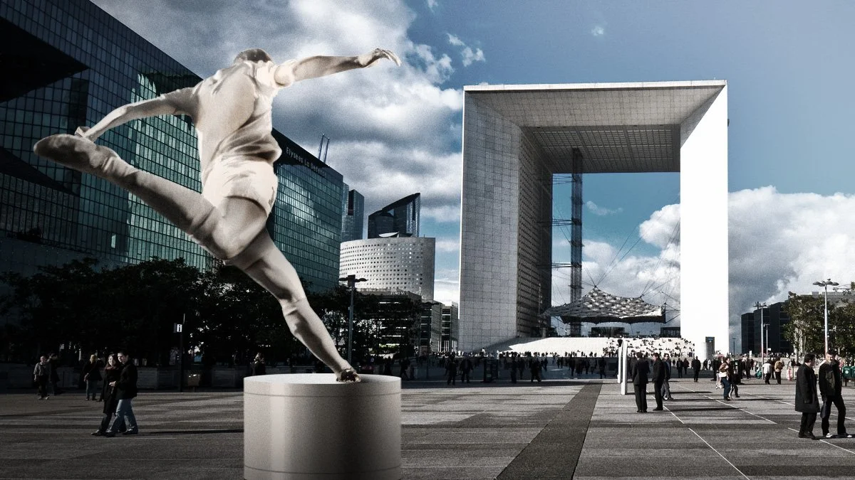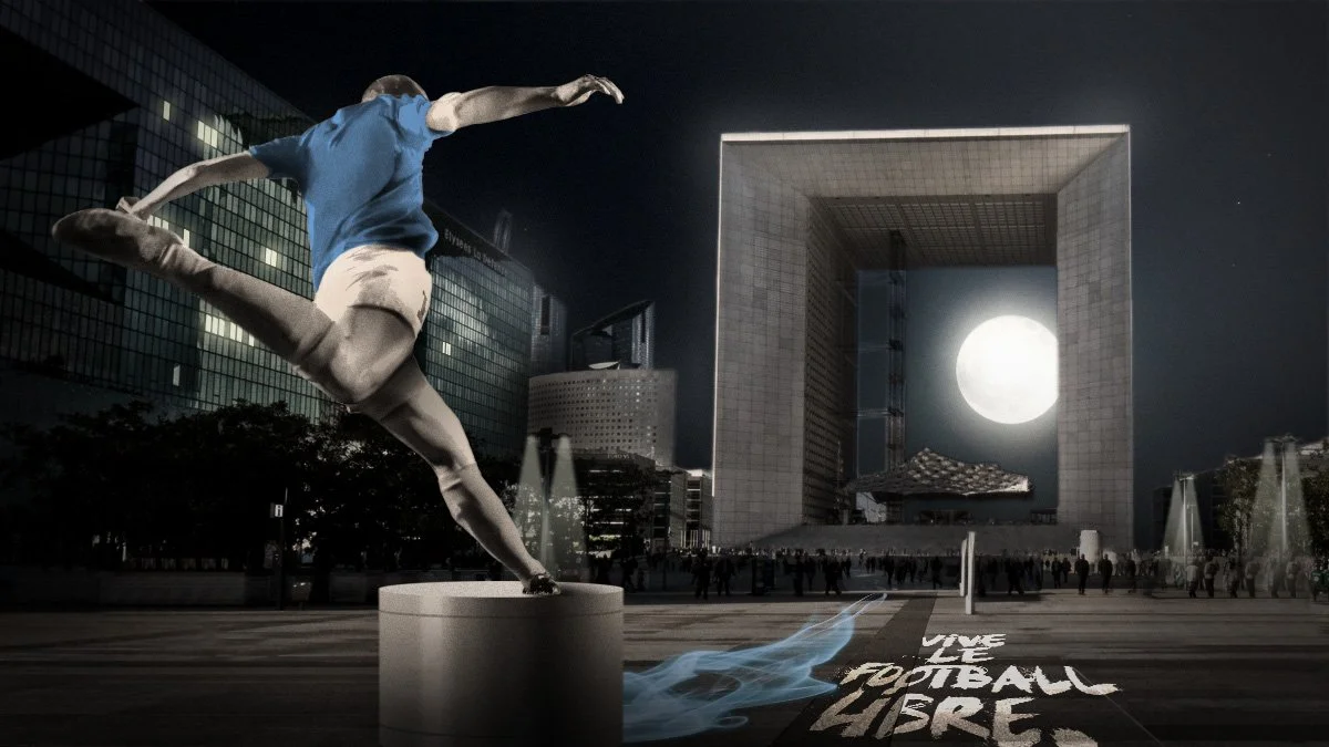 Une activation sur le parvis de la Défense. Avec le bon angle, la lune se positionne comme un ballon dans un but.